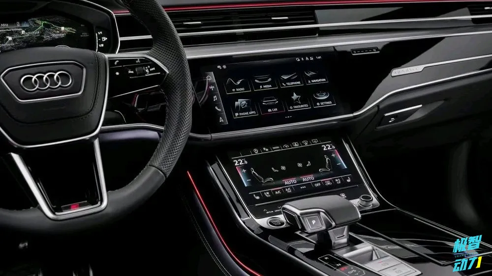 车内的档次感也是一款豪华车该有的水平。内饰用料基本上与奥迪A8L保持一致,但内饰增加了很多菱形缝线装饰,并用木纹装饰板进行点缀,豪华氛围一下子就出来了。同时,奥迪A8L Horch配备了三块高清大屏,车机搭载AUDI connect互联系统,整体配置富有科技感。